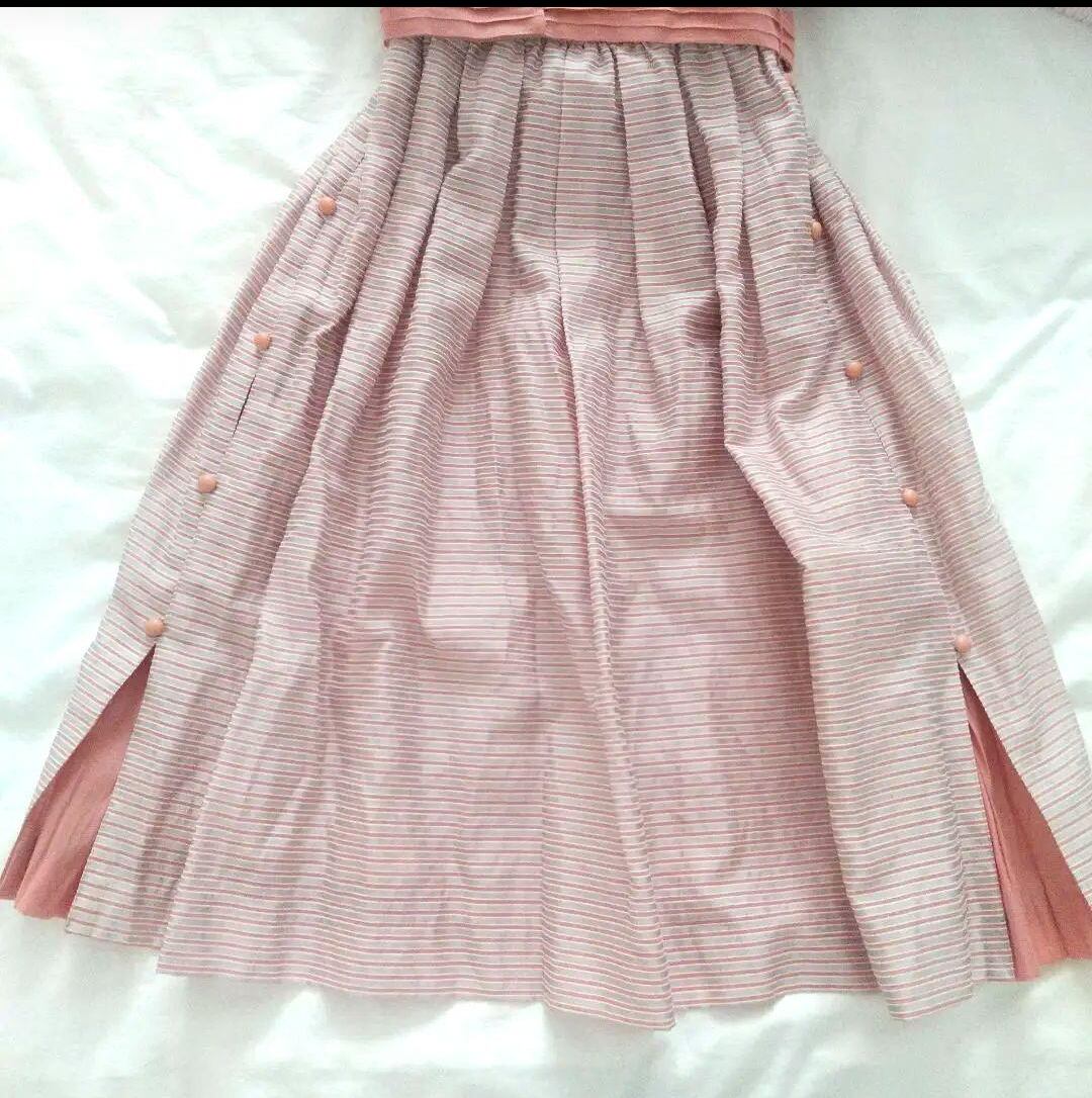 丸いボタン、リボン、ピンク、ボーダー、全てをギュッと詰め込んだ可愛いワンピースです。