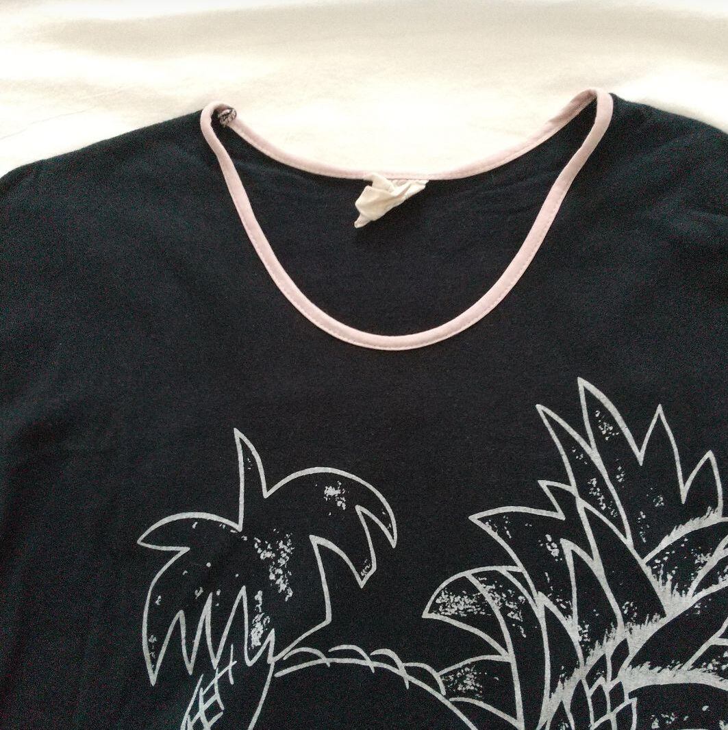 裾のボーダーや、袖や襟がくすみピンクな所も可愛いです。