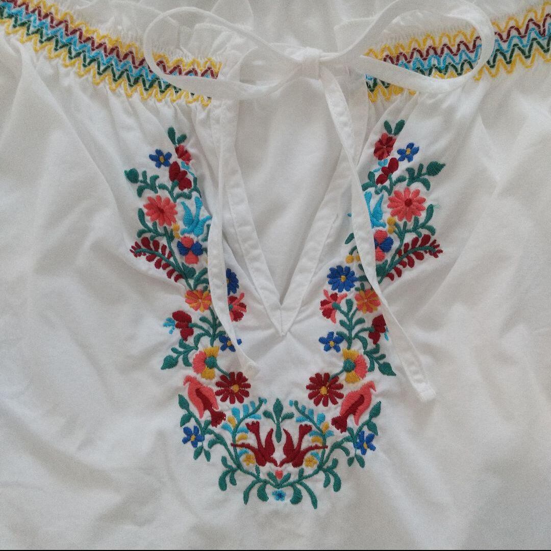 カラフルなお花の刺繍が可愛いトップスです。