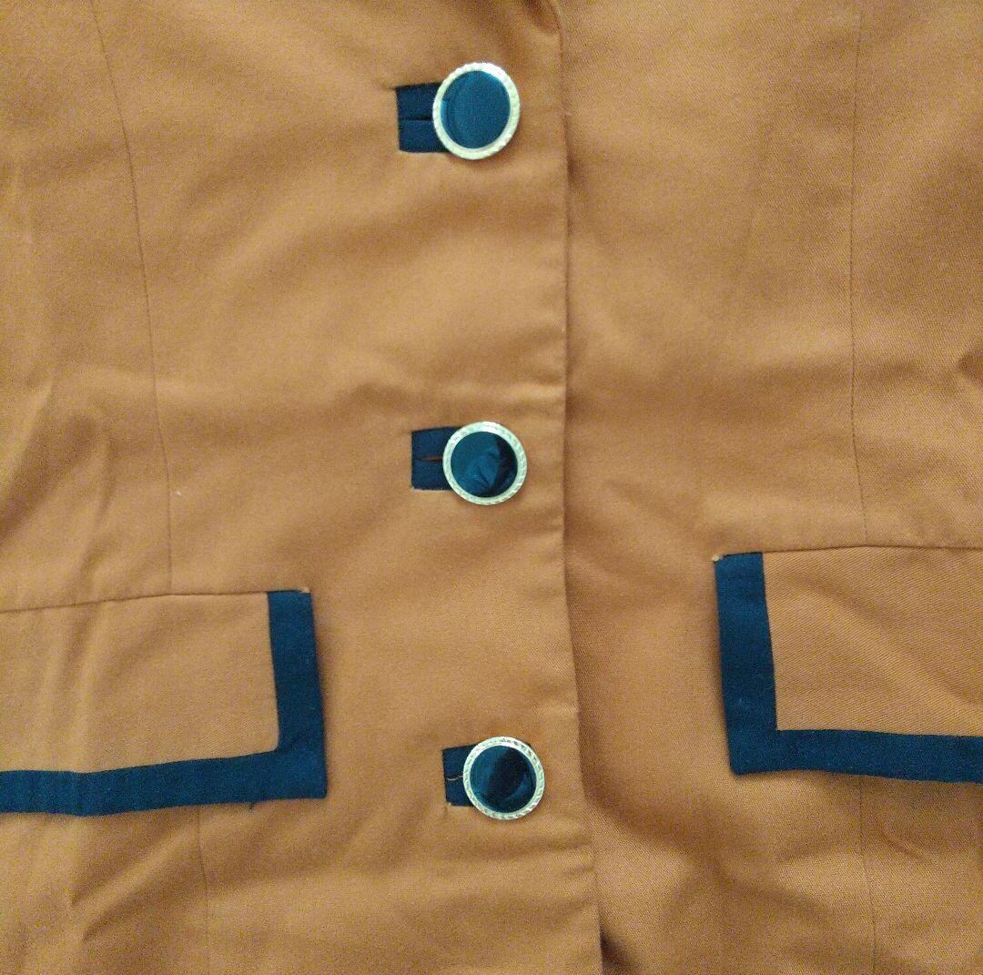 黒いパイピングとボタンが可愛いジャケットです。