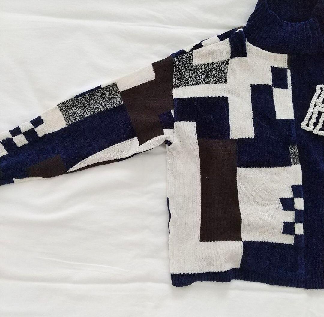 ネイビーとブルーを足したような深みのある色合いのニットです。