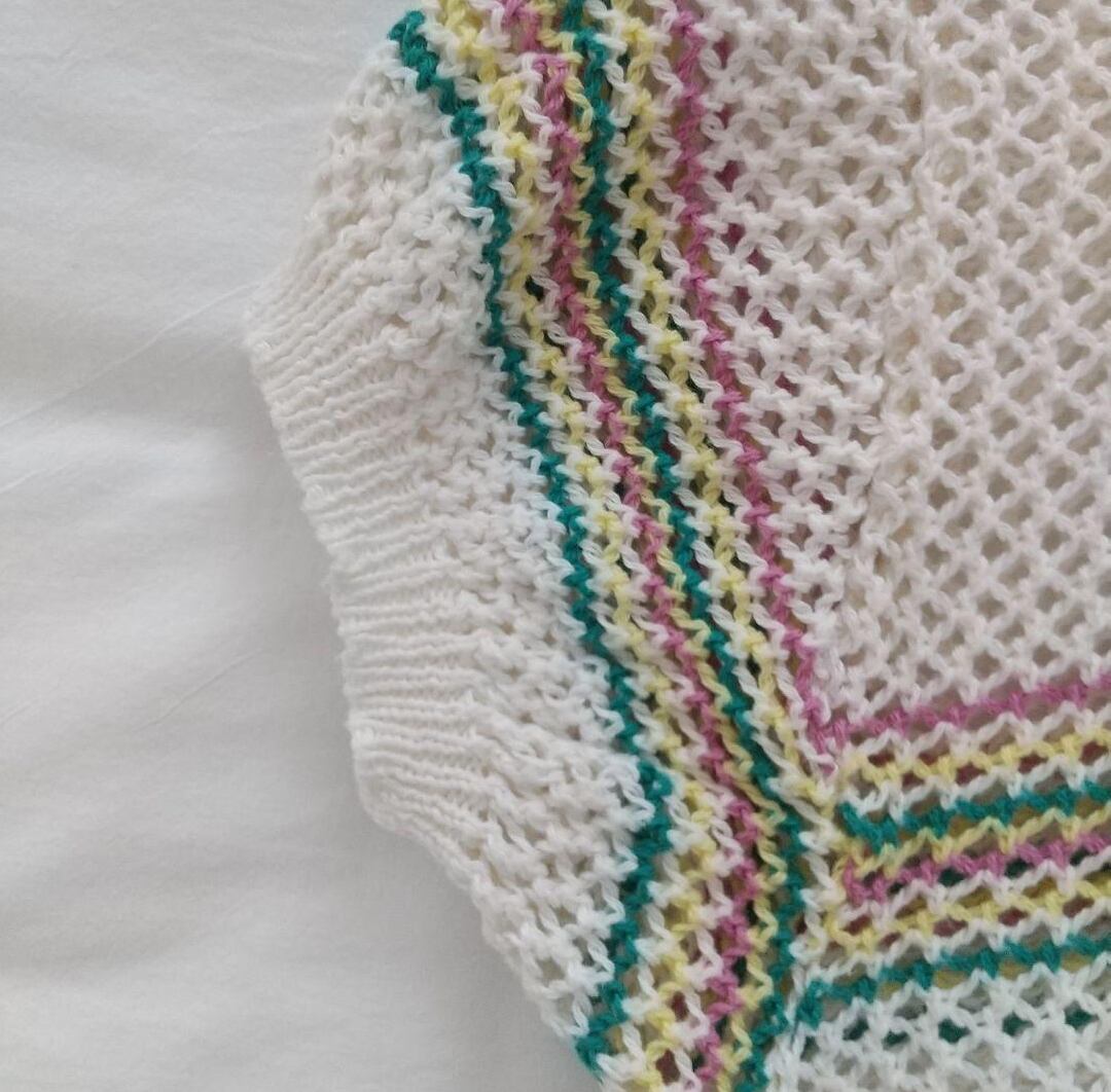 ピンクとイエローとグリーンの組み合わせが可愛いニットです。